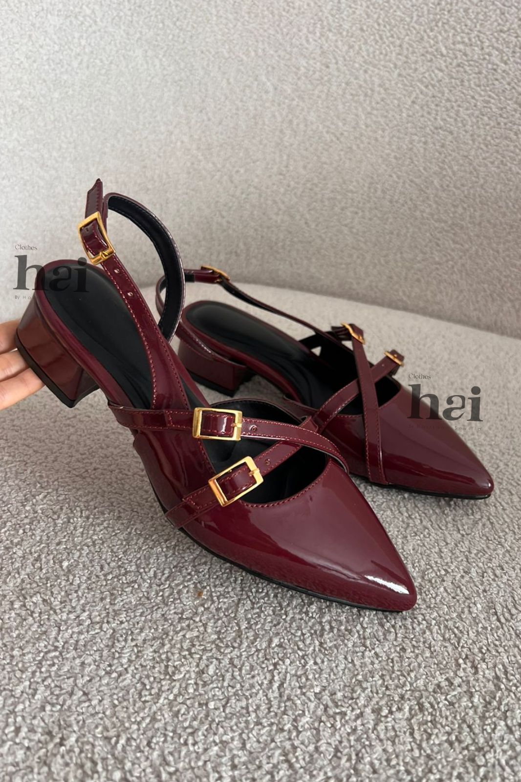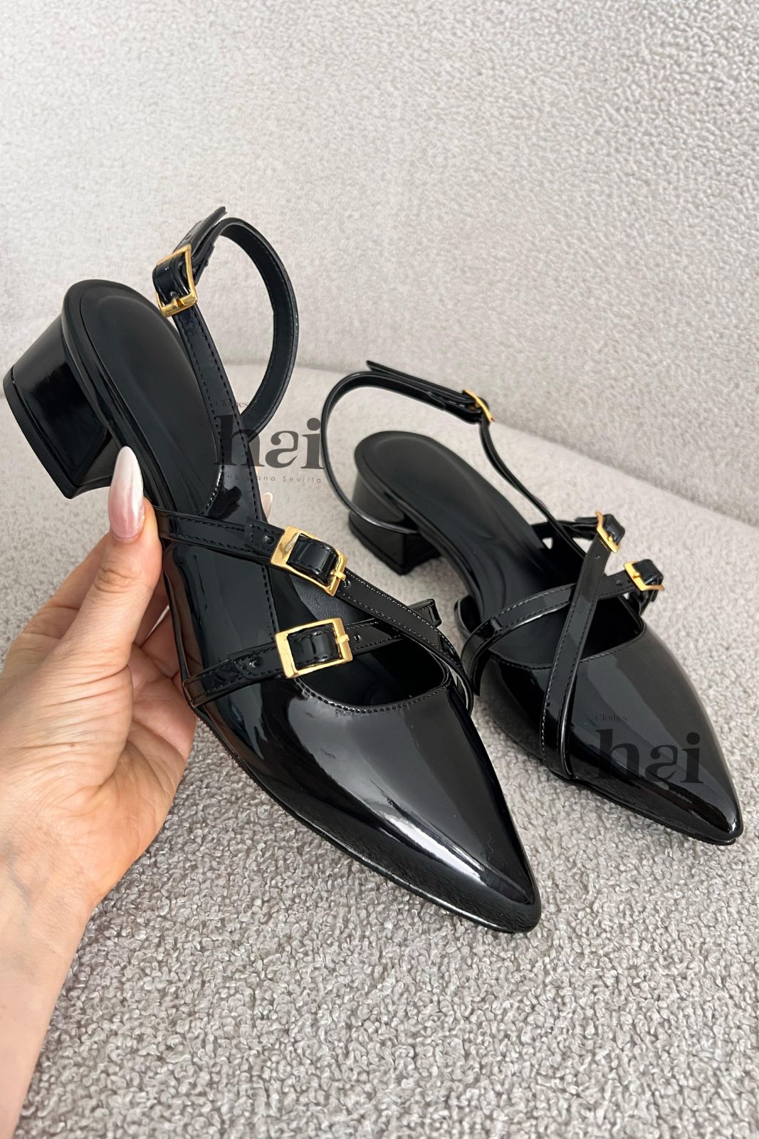Scarpin para mujer – Taco 7- Color Negro- Hebilla Dorada